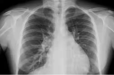 胸片能夠顯現(xiàn)我們的肺、心臟、縱膈、氣管,這么多器官都在一張片子上,所有器官的影像前后壓縮,變成了一張平片。所以,X線片是很多器官重疊在一起。