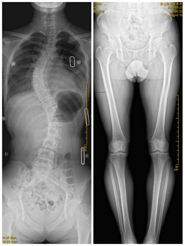 臨床在診治脊柱及下肢畸形時(shí),一些病情嚴(yán)重的患者往往需要手術(shù)矯正治療,這就需要對(duì)其進(jìn)行手術(shù)前后拍攝全脊柱或全下肢的X光片作為依據(jù),以便分析病情、制定手術(shù)方案和評(píng)估術(shù)后療效。目前廣大青少年及學(xué)生由于學(xué)業(yè)負(fù)擔(dān)重,時(shí)常接觸電子產(chǎn)品,更加容易出現(xiàn)脊柱側(cè)彎畸形等病變,脊柱全長(zhǎng)的攝片能及早地發(fā)現(xiàn)脊柱側(cè)彎及側(cè)彎的程度,及早地進(jìn)行臨床干預(yù)及治療。